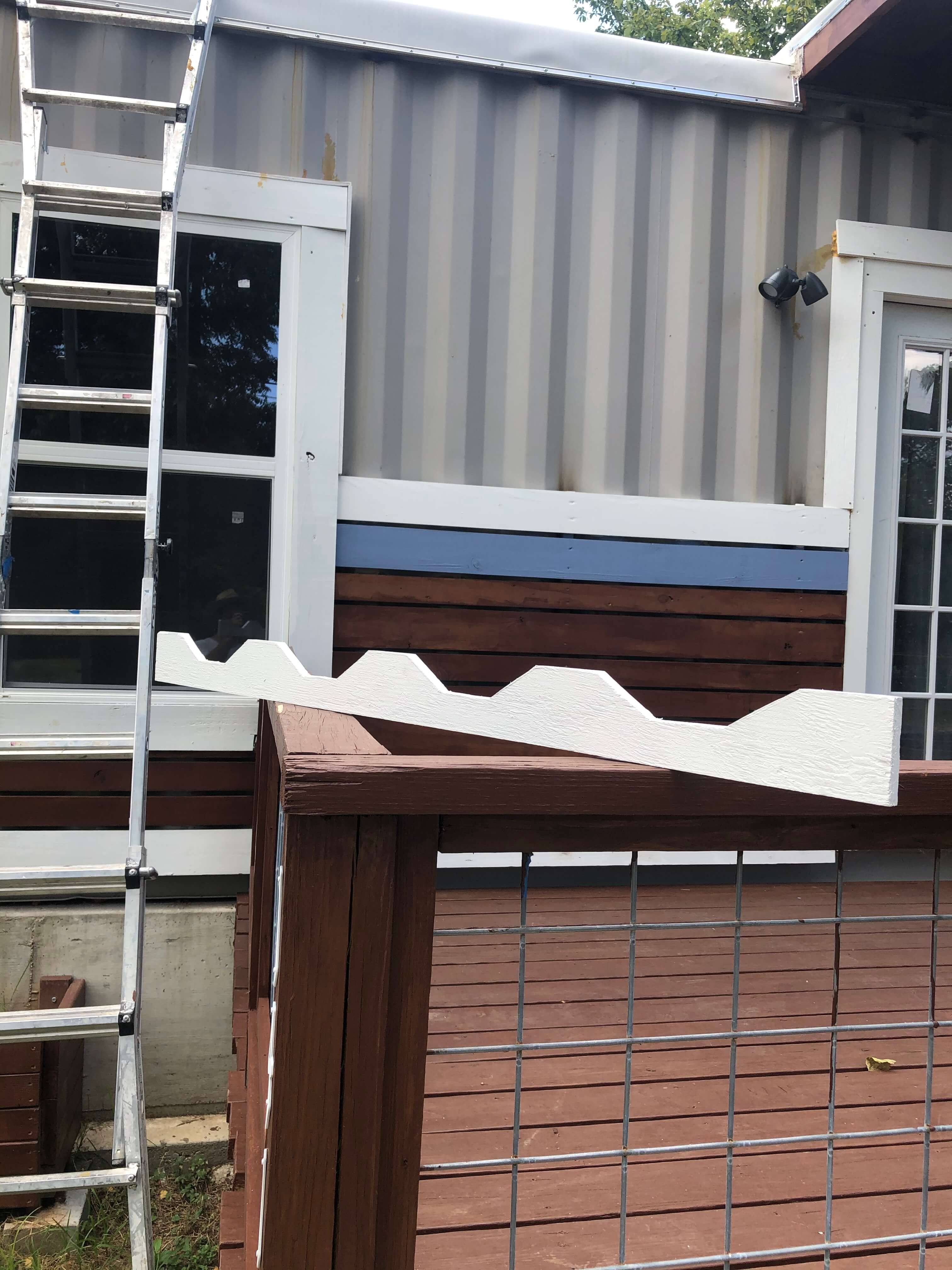 What I ended up doing was mounting horizontal 1x4 and 1x6 boards to create the appearance of wood siding. To do this, I had to weld (more welding!) brackets on the metal walls of the box, and then I could screw the wood into the brackets. I could have screwed the wood directly into the corrugated metal, but I didn't want to make more holes in it.